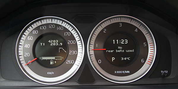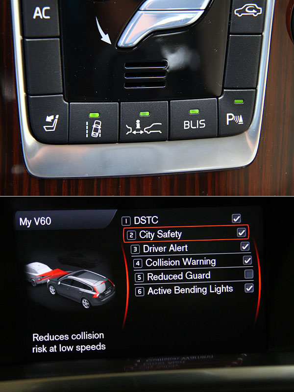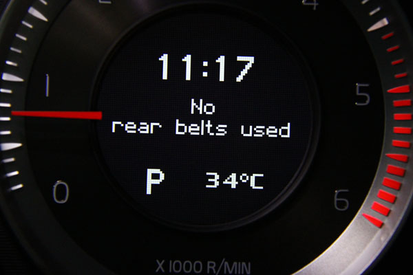 此外,目前在台灣後座繫上安全帶已成為標準規範,對此2013年式開始的V60 D4也增加了後座未繫安全帶提醒,提醒字樣同樣出現在儀表上。而Volvo自豪的City Safety系統,作動速度範圍從30km/h以下提升至50km/h以下,實用性大增;頭燈自動啟閉整合了隧道感應功能,但此點較為不解,進入隧道此自動感應頭燈原本就會自動開啟,何需再次強調隧道感應?似乎稍嫌多餘的解釋;另外,增加了AHB主動適路性照明系統,會依照路況與對向來車狀況,自動切換遠近燈,以期提供最佳照明,此點以台灣郊區路況而言也十分受用,可免除駕駛自行切換的麻煩、或是忘了切換所帶來的安全疑慮。