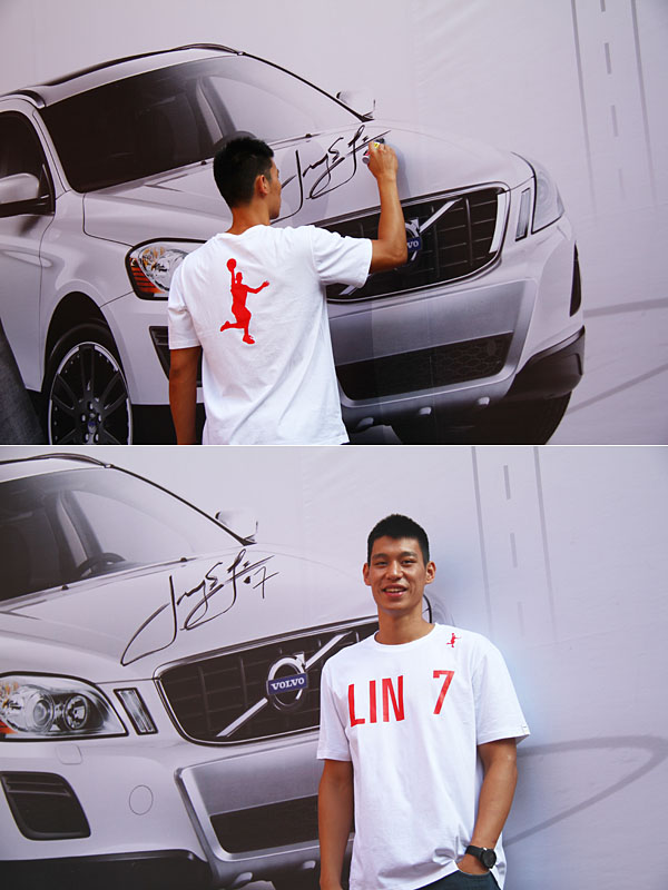 林書豪特地在他與XC60的巨幅海報上留下了親筆簽名。