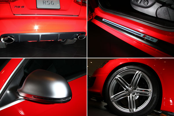 專屬空力套件、RS6專屬鋁合金塗裝車外後視鏡、20吋五爪運動版鋁圈、鋁合金門檻踏板都是RS6的專屬套件。