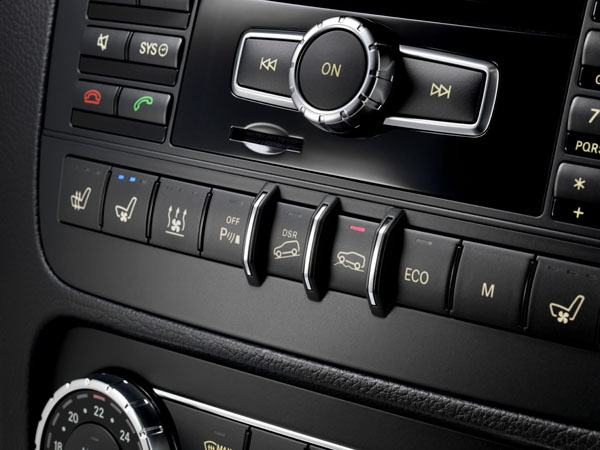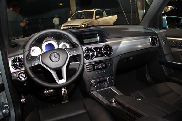 全新 GLK的車室用料極為講究,優異的質感更是不在話下。深色內裝與金屬飾板雙色調搭配得宜,各項操作介面亦經過重新安排整合,除了將排檔桿移至方向盤右側,方向機柱排檔桿的設計在操作上更加方便,中央扶手的置物空間也因此更加寬闊。