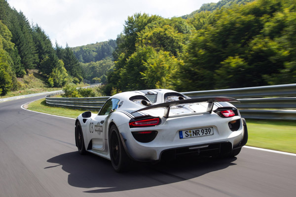 一輛Porsche 918 Spyder原型車在Nurburgring Nordschleife賽道測試的期間,創下一最快的單圈紀錄─7分14秒,這也表示,這輛插電式混合動力(plug-in hybrid)超級跑車超越了以往所有的Porsche跑車,更超乎所有車迷的期待。Porsche將在一年內正式展開918 Spyder的量產作業。