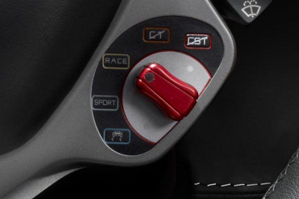 458 Challenge也將首度運用F1 - Trac循跡控制系統,駕駛可由旋鈕改變各項設定模式,而圖中458 Italia所提供的各系模式於458 Challenge上也將依競賽需求改變。