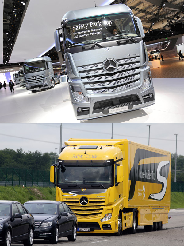 以曳引車為主力的Actros車系則追加主動煞車輔助技術,以加強低速狀態下的行車安全性。