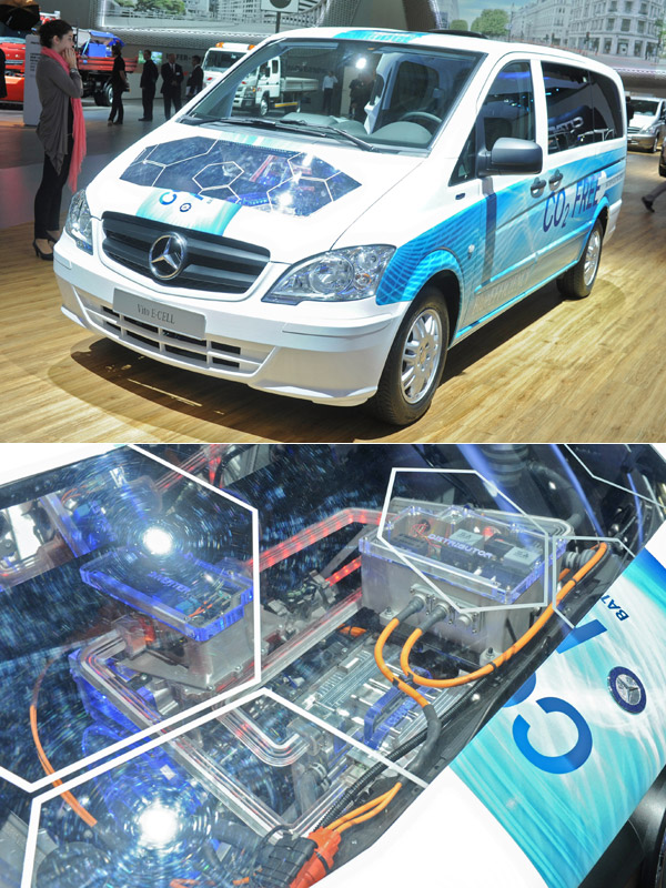 Mercedes-Benz小型廂型車Vito E-CELL,則是該級距首款純電力驅動的七人座商用車款,這款燃料電池商用車將於歐洲16個國家推出,讓對排污十分敏感的歐洲民眾能夠心服口服。