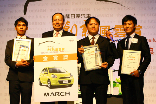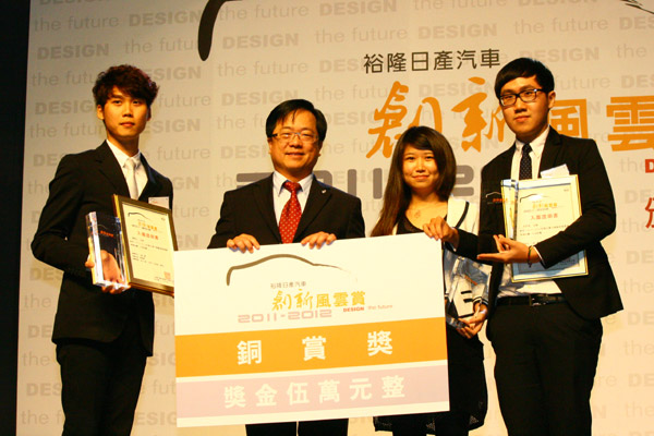 裕隆日產協理李振成先生(左二)頒發銅賞獎予成功大學隊伍「二皇一鳳」。