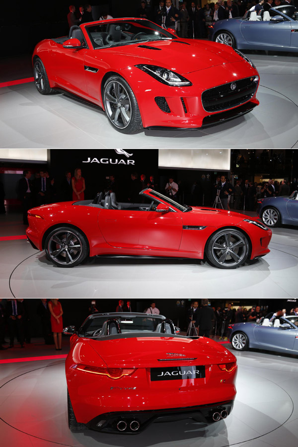 Jaguar在巴黎車展上帶來全新開發的F-Type雙座敞篷跑車,新車於德國當地的售價將介於73,000至99,900歐元(約新台幣276萬至378萬元)之間,而F-Type前置引擎後輪驅動的配置,將帶給駕駛人最大的駕馭樂趣。