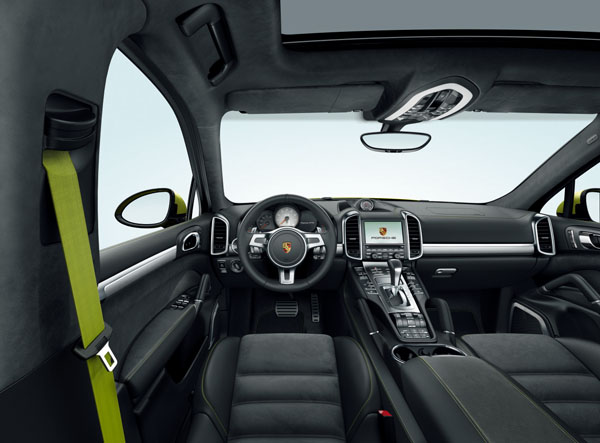 Cayenne GTS 的內裝設計融合了獨樹一格的品味與運動化風格,於座椅中央飾板、中央鞍座扶手、部分車門飾板、車頂內襯和立柱飾條均採用 Alcantara 高質感麂皮包覆。前座配置專屬的八向電調跑車真皮座椅,後座採用單人座造型,帶給乘客出色的側向支撐;具備換檔撥片的 SportDesign 方向盤專為手排換檔而設計,可與純粹簡潔的內裝風格和諧地融為一體。而跑車造型方向盤也可額外選配Alcantara 高質感麂皮包覆。