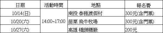 報名費內含: 折疊椅(價值新台幣590元)、帽子(價值新台幣290元)及入園門票。