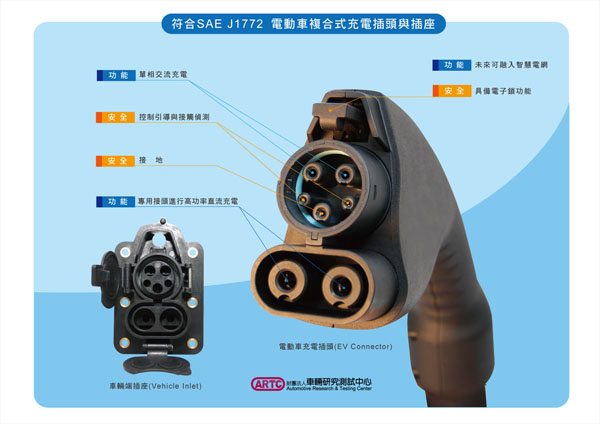 符合SAE J1772 電動車複合式充電插頭與插座介紹。
