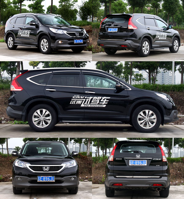 2011年第四代CR-V在美國洛杉磯車展中正式發表,並且在2012年陸續於全球各地區上市,當見到CR-V首批廠照時,就可以看出全新CR-V在外型上有著大幅度的改變,在過去的世代演化中,當第二代進化至第三代時,CR-V外型首度由原本較為方正的樣貌,大幅改變為採用圓滑線條設計,使其更具流線與運動感,而在第四代CR-V上,Hodna進一步地將所有元素放大,鈑件弧線與線條轉折都較前一代更為明顯,也更具有存在感,然而當我們實際在中國見到CR-V時,也許是由東風本田太倉經銷商提供的試駕車選擇了黑色塗裝,讓它比起在照片中的壯碩感稍稍收斂了些,協調性也比想像中的好些,而最明顯的焦點仍是那反〝ㄑ〞字型的D柱設計,辨識性極高,也讓CR-V在車陣顯得格外顯眼;然而事實上,新一代CR-V的車長與車高都較前代車型略縮,僅在車寬上增加了75mm,也讓它更具壯碩感。