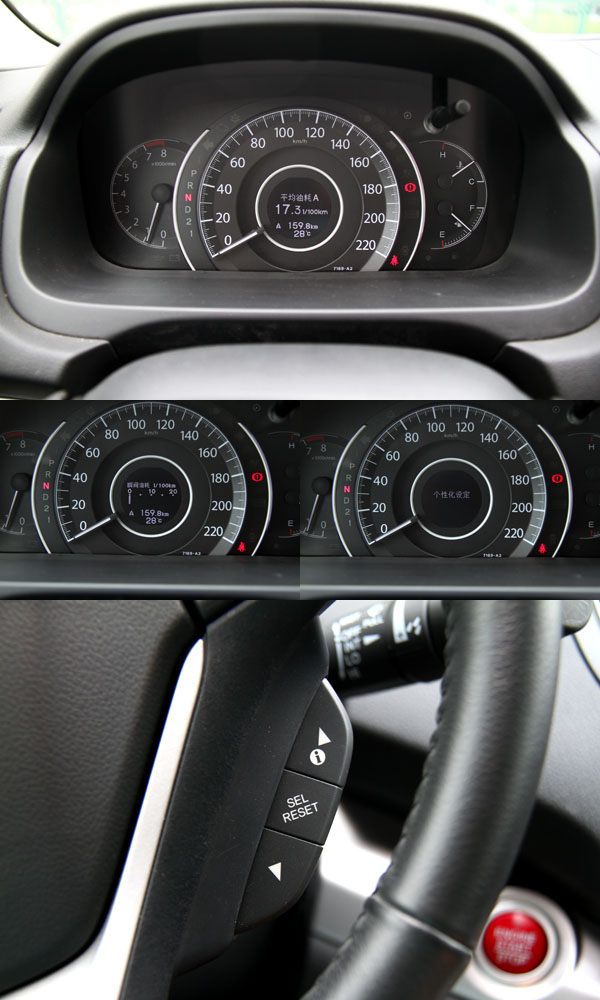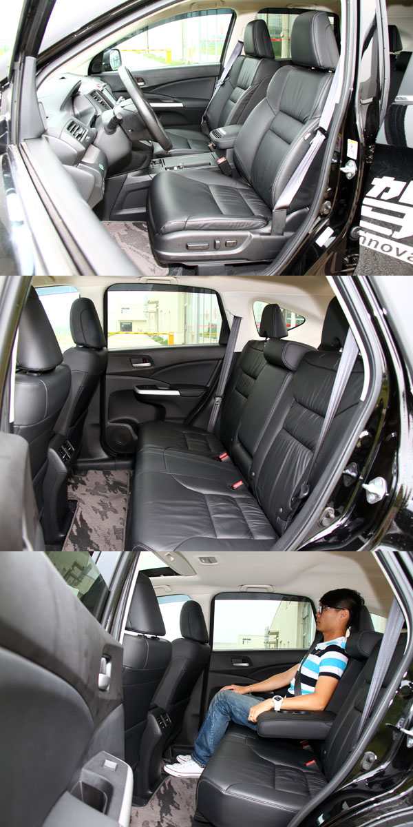 相較於外觀的突破,第四代CR-V的座艙就還是比較顯得中規中矩,V型的懸浮式中控台,分層地將不同介面安排於其中,並且皆設置於駕駛者可以輕易操作的位置,就算它是一款全新車型,也不會因為初次接觸,讓人感到心慌手亂,而已在九代Civic上配置的i-MID系統,於CR-V上也沒有缺席,搭配著設置於中控台上方的五吋液晶螢幕,可控制音響系統、旅程電腦與行車資訊,以及自訂桌面等功能;而在熟悉的座艙氛圍中,較讓人感到有新意的部分,則是三環式的儀錶板,將時速錶置於中央,在警示燈號、排檔燈號,轉速錶、水溫錶、油量錶等環列於兩側,而時速錶的正中央則是多功能液晶顯示幕,環狀排列的方式多了些前衛與運動感,辨識上同樣是簡單明瞭。配備部分,本次試駕為中國販售的CR-V車系中最頂級的2.4 VTI-S NAVI車型,包括:六具輔助氣囊、駕駛座八向電動座椅、副駕駛座四項電動座椅、VSA車輛穩定輔助系統、HAS坡道輔助系統、衛星導航系統、雙區恆溫空調等皆為標準配備,十分豐富。