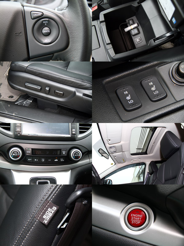 中國版CR-V車系中頂級的2.4 VTI-S NAVI配備十分豐富,包括:六具氣囊、按鈕引擎啟動系統、電動天窗、雙區恆溫空調、雙前坐電熱功能、駕駛座八向電動調整座椅、多元外接音源連接介面與定速系統皆為標準配備。