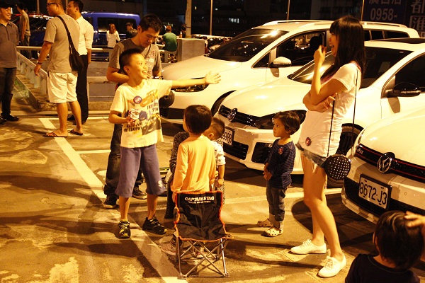 不認識的看熱鬧,看看一整列排好的車友愛車美不勝收,認識的車友聊天交換心得或是久久未見的車友一吐心事暢快,攜家帶眷的車友有所在多有,多半有經驗的準備了小椅子給小朋友休息,就在涼爽的秋日中,於晚間一點半結束了第一場最大的臉書北部VW社團車聚。
