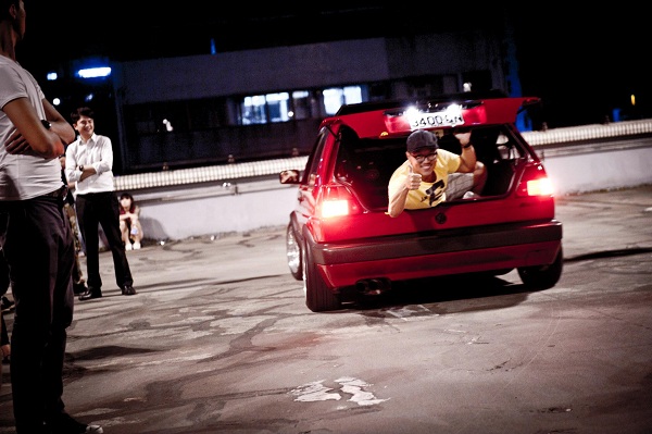 大約十點多,主辦單位開始規畫凌波舞遊戲,自然就是希望車身改低的同好可以出來挑戰一下離地最接近的樂趣,於是設下關卡請車友們來參加,於是一輛輛改裝底盤的Beetle、Golf、T2、T4、Golf Variant、Scirocco甚至是911也下場同樂,不斷的有車友跳上參賽車輛協助降低參賽車輛的高度,甚至連引擎蓋跟行李箱都有人埋藏其上!一個小時的比賽時間充滿歡樂氣氛,最後分出的前三名頒給贊助商獎品,結束了當天活動的高潮。