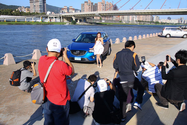 Mazda Taiwan粉絲團為凝聚粉絲向心力、拉近與粉絲的距離,特別於日前號召舉辦「拍出你的Mazda—粉絲團攝影交流活動」,邀請網路報名粉絲來到擁有廣闊風景的北市大佳河濱公園,進行一場別開生面的攝影交流。活動特別準備Mazda最新車款—SKYACTIV未來世代科技跑旅CX-5,及親切美麗的Model讓粉絲們拍攝,還邀請專業攝影講師到場講解汽車攝影技巧,使粉絲們近距離感受並捕捉Mazda CX-5「魂動」美型魅力。