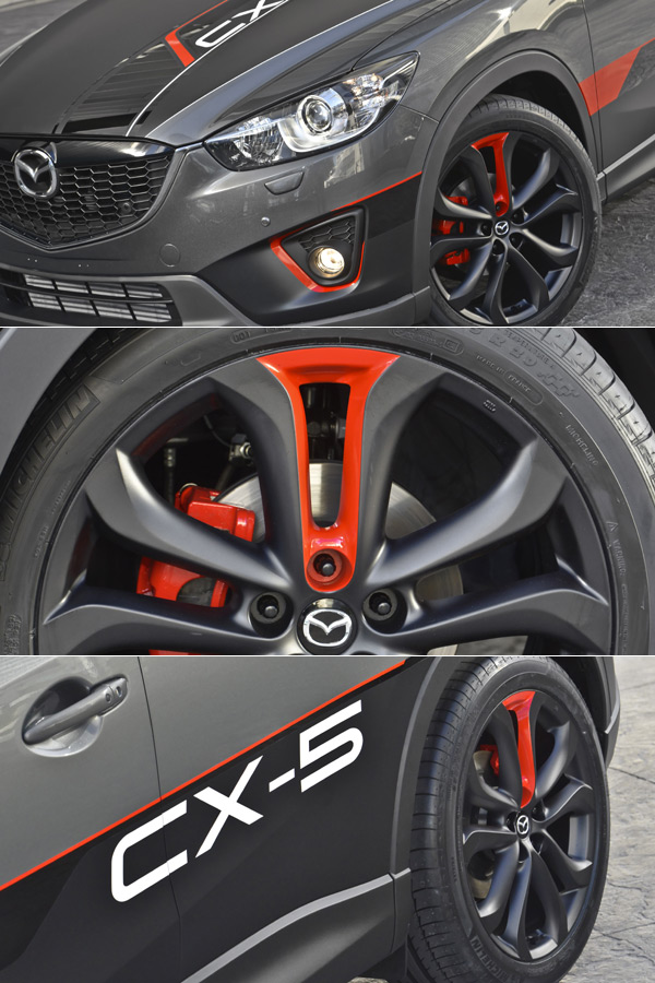 大片的灰、黑色為CX-5 Dempsey的色彩基調,而除了白色CX-5字樣外,紅色的點綴更有畫龍點睛之效。