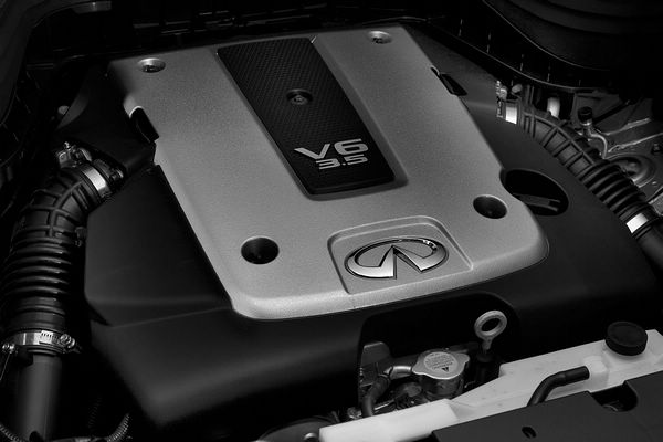 EX35動力源自採用對稱式脈衝進氣系統、eCVTCS電磁式可變氣門正時控制系統的Infiniti VQ35HR 3.5升V6引擎,擁有最大輸出馬力306hp,搭配具有DS運動模式(退檔自動補油)的5速手自排變速系統,以及AWD(All-wheel-drive)全時四輪傳動系統,利用液壓系統的作動,進行前後輪扭力輸出分配,所以對應各種不同的路況均能夠輕鬆的行駛。