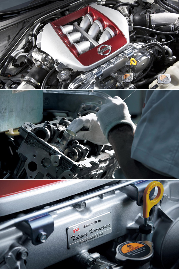 在無塵室採手工組裝的3.8升V6雙渦輪引擎,在新年式GT-R上更換了噴油嘴、洩壓閥、與油底殼導板等零組件,除了增進反應回饋、更減少機件磨擦。