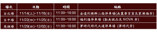 「The All-New Focus 挑戰想像試駕會」已正式開跑!自11月14日至12月2日福特於北、中、南舉辦「The All-New Focus 挑戰想像試駕會」,邀請民眾親身體驗 The All-New Focus 超乎想像的駕馭樂趣。現場備有兒童遊戲區、輕食區,提供消費者全家大小最新的週末休閒去處!親臨現場就有機會參與抽獎,贏得萬元現金或 The All-New Focus 模型車!有興趣的消費者請至www.ford.com.tw 了解詳情,或致電全省福特展間洽詢。歡迎民眾踴躍參加,體驗The All-New Focus 的超凡魅力。