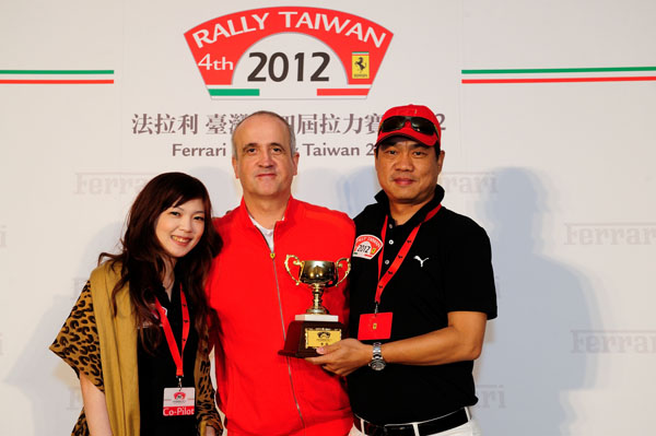 車手董先生和領航員由臺灣蒙地拿總經理頒發獎盃。