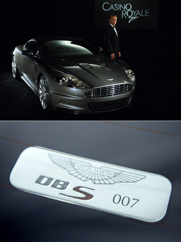 「皇家夜總會」與「量子危機」裡擔任James Bond座駕的Aston Martin DBS,車內還有專屬007號情報員的銘牌。