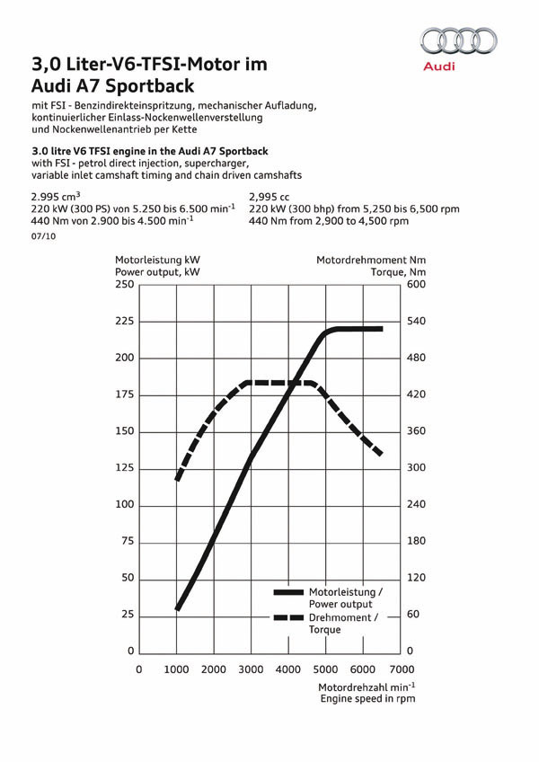 此為3.0L TFSI機械增壓汽油引擎的輸出曲線圖。
