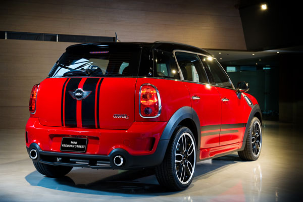 Mini原廠為讓Mini Countryman車迷也可擁有嗆辣剽悍的風格選擇,推出限量20台氣勢磅礡的Mini Redburn Street特仕車款,以Mini Cooper S Countryman車型為基礎,套件內容包含首次開放Mini Countryman車款使用的限定Chili Red車色、John Cooper Works空力套件、John Cooper Works R129銀黑雙色輪圈組、John Cooper Work排氣尾管、遠光燈加裝組(黑色)、引擎蓋與車身貼紙、黑色格紋方向燈飾板、車內豪華鍍鉻裝飾、車內黑色套件組合、Piano Black儀錶板飾板與超短天線,建議售價近245萬元*。即日起,總代理汎德提供限量20台名額,可以207萬元入主限定嗆辣Mini Redburn Street特仕車款,Mini現更推出限時月付9999元低利分期專案,月底前入主Mini,更能獲得價值四萬元的Mini精品/加裝品禮券*,讓您輕鬆擁有絕無僅有的Mini愛車!