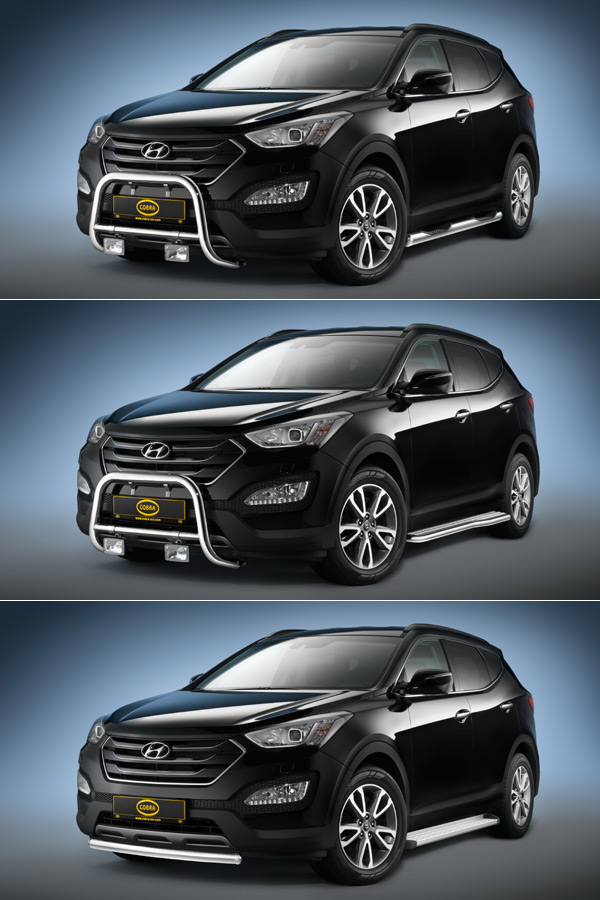 Santa Fe車主也能選擇更小的Cobra CITYGUARD防撞桿,直徑同為60mm的不鏽鋼護架,可以直接安裝、並附於前保桿下擾流上。