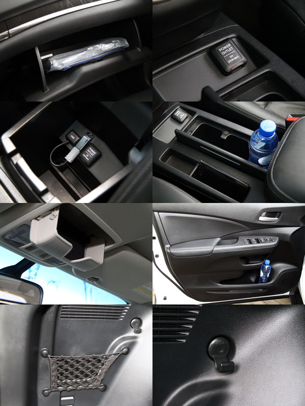 除了充足的行李廂空間,CR-V仍舊在全車各角落設置許多置物空間,其中上前幾代車型於前座中央所留下的中央走道,在此代車型上改回傳統地中央鞍座設計,同時也增加了更多的置物機能。