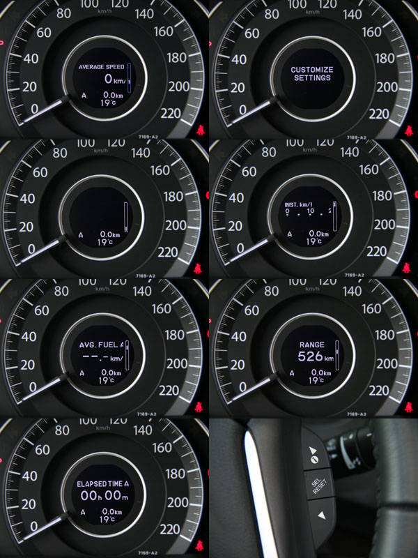 時速錶中央的多功能液晶顯示幕可提供瞬間油耗、平均油耗、行駛里程、平均車速、可行駛距離等資訊。