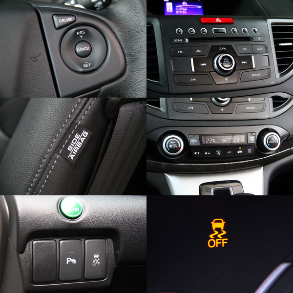 在本次試駕的CR-V 2.4 VTi-S車型上,已將定速系統、雙區恆溫空調、附USB/Aux-in外接功能之CD音響、四氣囊、VSC車身動態穩定系統皆列為了標準配備。