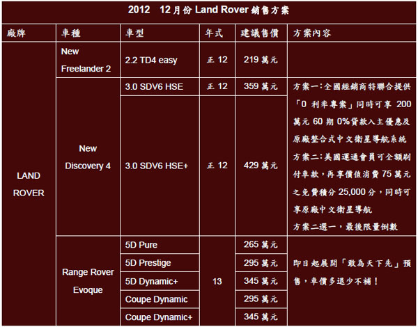 Land Rover在台灣總代理九和汽車積極且充滿熱忱耕耘下,全車系在2012年創造了極優異的銷售成績!