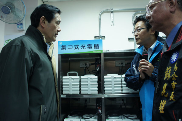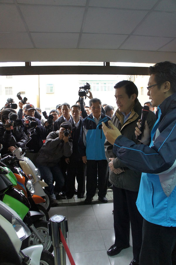 在經濟部與民間企業共同努力下,至今短短不到兩年的時間,澎湖縣電動機車之替代率已達33.5%,可減少335噸排碳量與207,672公升耗油量,成效十分卓著!總統馬英九1月5日特地搭機前往澎湖,至當地電動機車租賃規模最大的艾上綠能公司聽取成果簡報,視察廠商最新研發的25座集中式充電設施,並實際察看目前台灣電動機車第一品牌e-moving電動機車在澎湖的運行成果。