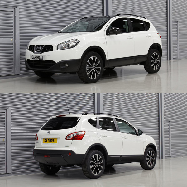 Qashiqai 360的內裝呈現半皮革搭配白色雙縫線的造型,此外在排檔座、車門門把、與中央扶手等處採用了高光澤亮黑飾板;外觀部份,Qashiqai 360在車頂置物架、與後視鏡外殼上也運用了高光澤黑色部品,另外還有專屬的「360」徽章。Qashiqai 360也追加一全新珍珠光烤漆色─「風暴白」(Storm White),並與上述高光澤黑部品形成完美對比,且此珍珠色烤漆為非加價選配;若想要金屬色的烤漆,那麼消費者得另外加價500英鎊(約2.3萬)。