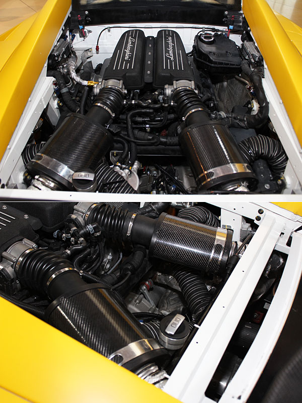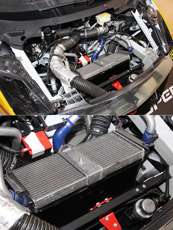 為了對應賽事激烈操駕環境對於引擎與散熱系統的負擔,此輛Gallardo Super Trofeo另外於車頭正中央安裝了第三副水箱,提供更佳散熱效果。