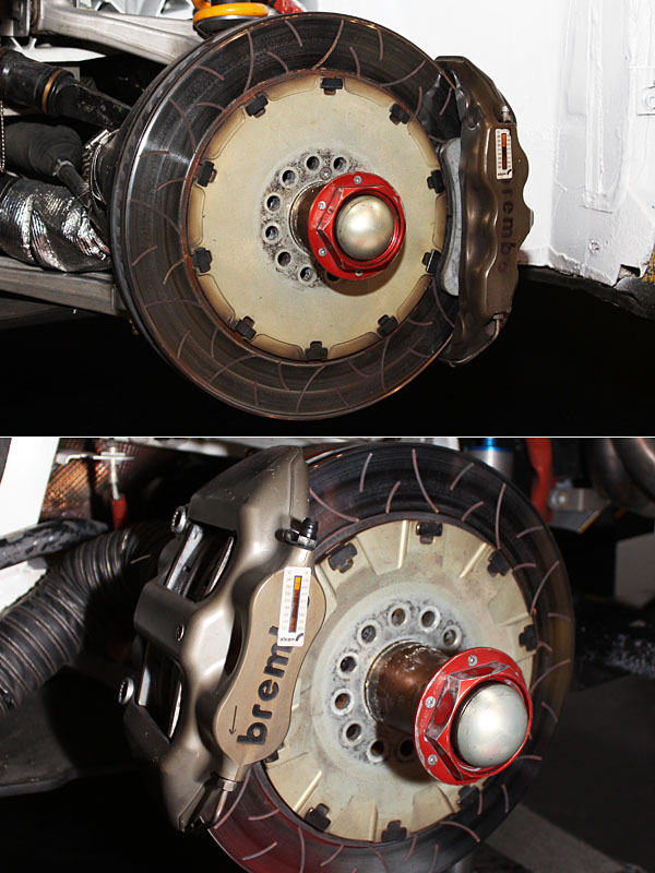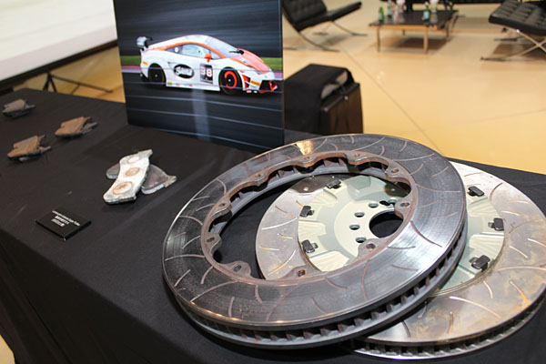 現場也展示經過賽事蹂躪的來令片與碟盤。
