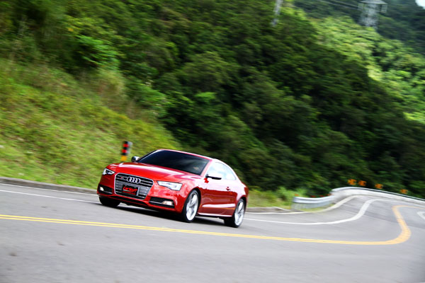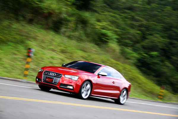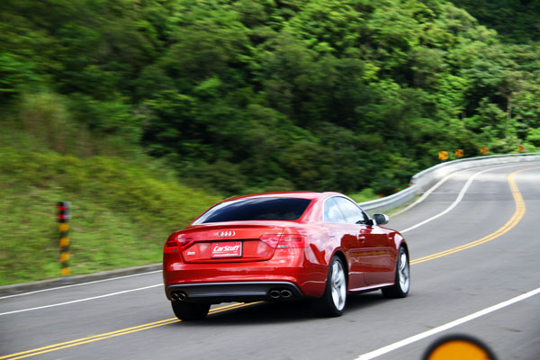 操控面上,搭載四輪傳動系統的S5 Coupe,仍就保持了一貫的高度穩定性,搭配有勁的動力輸出,在山道中,只要對路況夠熟,抓準路線,幾乎可以靠油門控制、以很均等的速度快速通過多數彎道,可以減少許多減速後再加速的時間,在相同路段,同級的後驅對手要跑到同樣速度,就必須更專注於操駕車輛,S5 Coupe的穩定性也給予駕駛者更多地安定感,但是相對的,對於部分熱血份子來說S5 Coupe的樂趣也少了些。