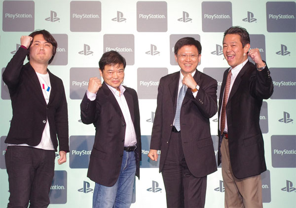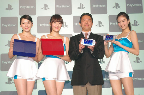 索尼電腦娛樂總裁織田博之與PSGirl展示新品。