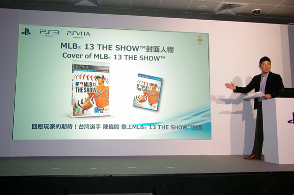 台灣索尼電腦娛樂總經理江口達雄揭露MLB_13_The_Show封面。