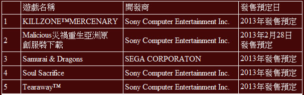 隨著2013台北國際電玩展正式展開,Sony Computer Entertainment Taiwan Limited (SCET)在展前記者會中公布PS3、PS Vita全新顏色機種,並預計在2月開始發售!