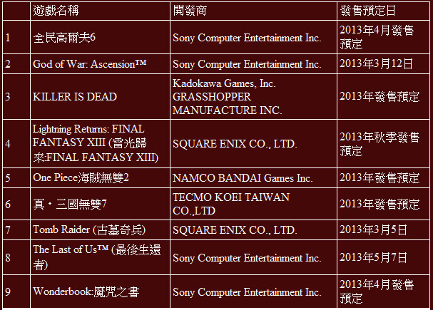 2. 1/30 公布的中文版 PS3™遊戲陣容
