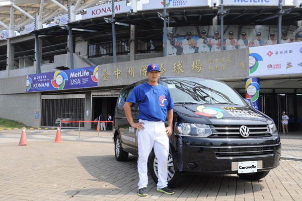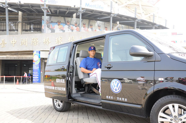大會指定用車福斯商旅Caravelle,協助接駁世界棒球經典賽事的貴賓與球員(圖為中華隊球員林哲瑄)