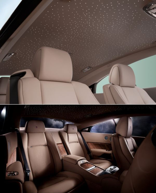 內裝更設有星光頂篷 (Starlight Headliner),是繼Phantom 車系後首度展示的定制特色。1,340枚LED燈全部以手工縫於車頂襯裡,呈現漫天星光的迷人景象。