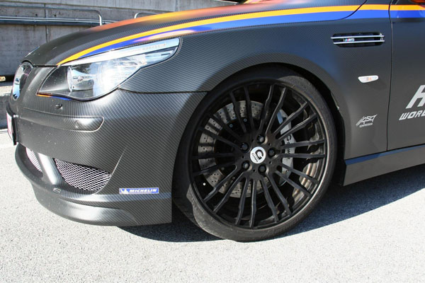 為有效減輕簧下重量,打破紀錄的M5 Hurricane RR乃是換上19吋輪圈,而非圖示的20吋輪圈規格。