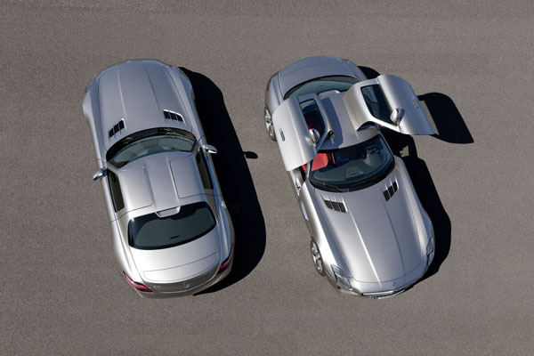 SLS AMG的上掀式鷗翼車門設計,乃是師法1954 年登場、首創鷗翼式車門設計的 300SL Gullwing車型而來。