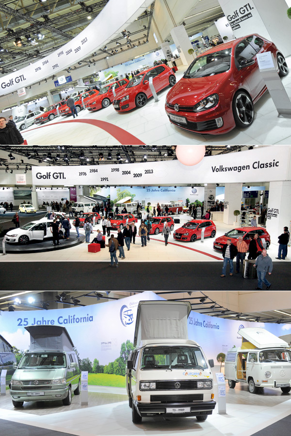 VW集團所在的展館,幾乎是旗下九個品牌車款的天下,更是車迷與人潮駐足的所在;VW與VW商用車兩個品牌,帶來了展場上最吸引人的陣容,其中VW以輸出110hp的第一代Golf GTI、到最新220hp的七代GTI一字排開,而VW商用車也以暱稱「Bulli」的T1-T5 Camper / California歷代露營車來吸引車迷目光。