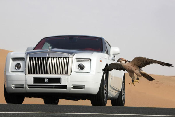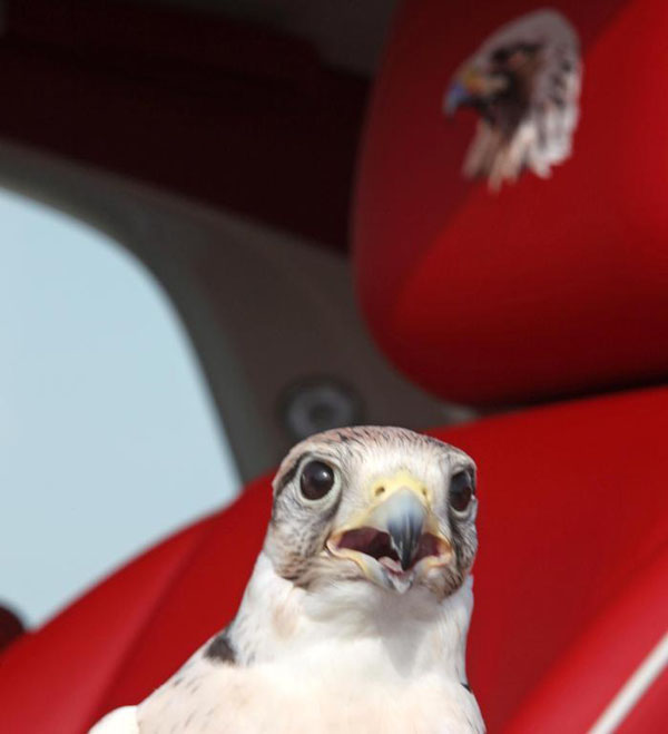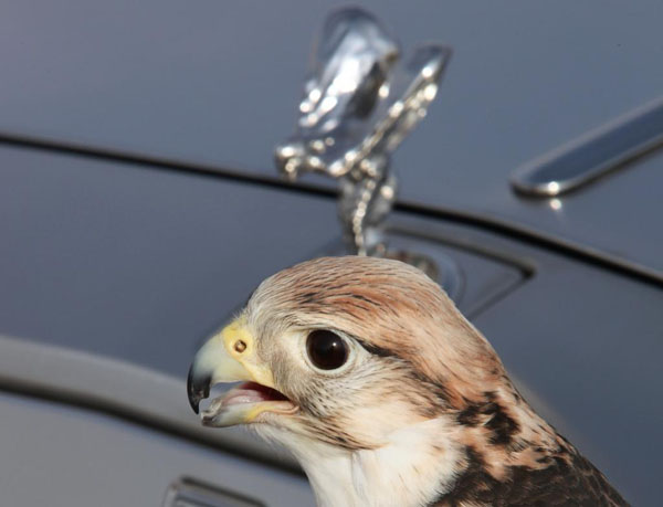 Shaheen地區專有的獵鷹與Rolls-Royce展翼天使合影,相當獨特。