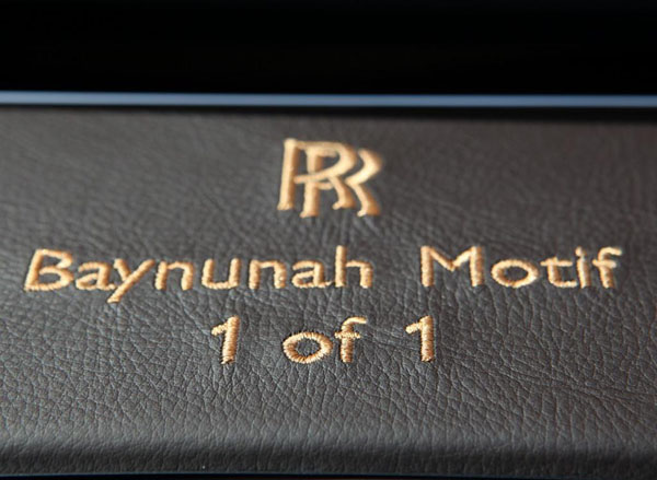 首先乃運用米色與褐色為設計主調的Baynunah式樣Phantom,由於位於阿布達比西部的Baynunah,地型以沙丘為主,有見於沙丘的景色色彩,讓原廠運用了米色與褐色作為此輛Phantom的運用雙采,無論車身外觀或內裝,並在雙采的運用下提升活潑性,營造出更勝單色車型的層次感與視覺效果。