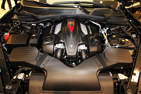 此具最新的3.8升V8雙渦輪增壓缸內直噴引擎,由前Ferrari F1引擎設計總監Paolo Martinelli帶領的Maserati Powertrain中心自行研發、Ferrari Maranello工廠手工生產的新一代兼具低油耗、低空污排放與高效能的動力心臟,創造了每公升排氣量達到139hp的動力輸出,相較於第五代Quattroporte Sport GTS,在極速上足足提升20 km/h,扭力也增加了200Nm之多,性能大幅提升。