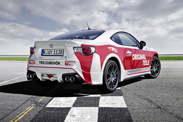 全新的「TRD Performance Line」配件,使得GT86 TRD適用於賽道、與一般道路的駕馭;全套套件包括有可減少高速揚升力、同時穩定直線加速性能的車尾分流器,這具分流器售價為245歐元(約新台幣9,500元),此外,可升級車尾視覺的四具排氣尾管、與後保桿總成則要價1,489歐元(約5.8萬),另外前保桿下擾流、與車尾小型尾翼則分別要價515歐元(約2萬)與379歐元(約1.5萬),兩側側裙則要價569歐元(約2.2萬);另外,在任何速域下均可提供安全操控性的懸吊穩定器則要價1,025歐元(約4萬),而以碳纖維材質打造的懸吊平衡桿,則要價379歐元(約1.5萬)。